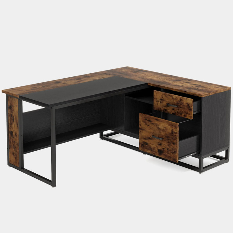 این میز بهخاطر ابعاد مناسب و طراحی L شکل، فضای کار و استفاده بهینهای را برای کاربر فراهم میکند و برای کامپیوترهای رومیزی یا لپتاپ مناسب است.