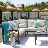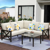 مبلمان فضای باز الشکل با میز – فریم قهوهای و کوسن روشن
