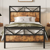 پشت تخت (هدبورد) و جلوی تخت (فوتبورد) با تختههای MDF طبیعی تزئین شدهاند و خطوط هندسی ضربدری فلزی در طراحی آن حس پویایی و استحکام را تقویت میکنند.