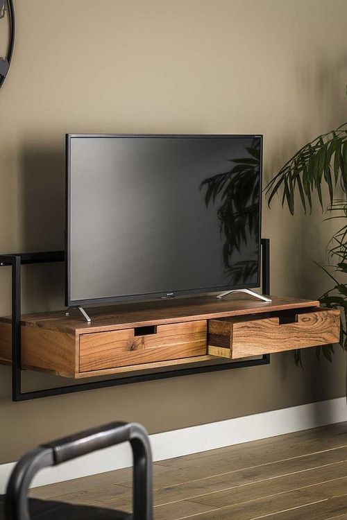 ابعاد میز شامل طول 120 سانتیمتر، عرض 45 سانتیمتر و ارتفاع 35 سانتیمتر میباشد که به اندازهای کافی برای قرار دادن تلویزیونهای بزرگ و همچنین وسایل جانبی مانند کنسولهای بازی، گیرندهها و دستگاههای صوتی-تصویری است. این میز دارای دو کشو با فضای ذخیرهسازی مناسب است که به شما امکان میدهد وسایل اضافی را به صورت مرتب و دور از دید نگهداری کنید.